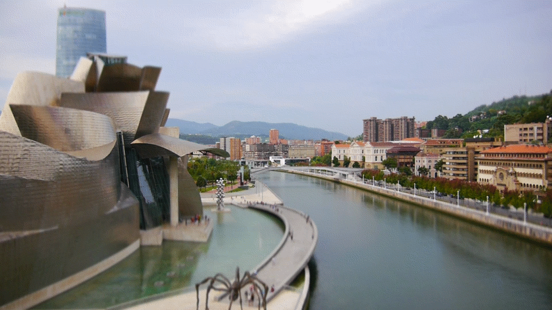 Este es un Cinema GIF o cinemagram de Bilbao. Si os fijáis en la imagen, es estática excepto por una zona donde la gente se mueve y circula (se aprecia mejor en la imagen a tamaño completo, pulsad sobre esta de encima para verla).