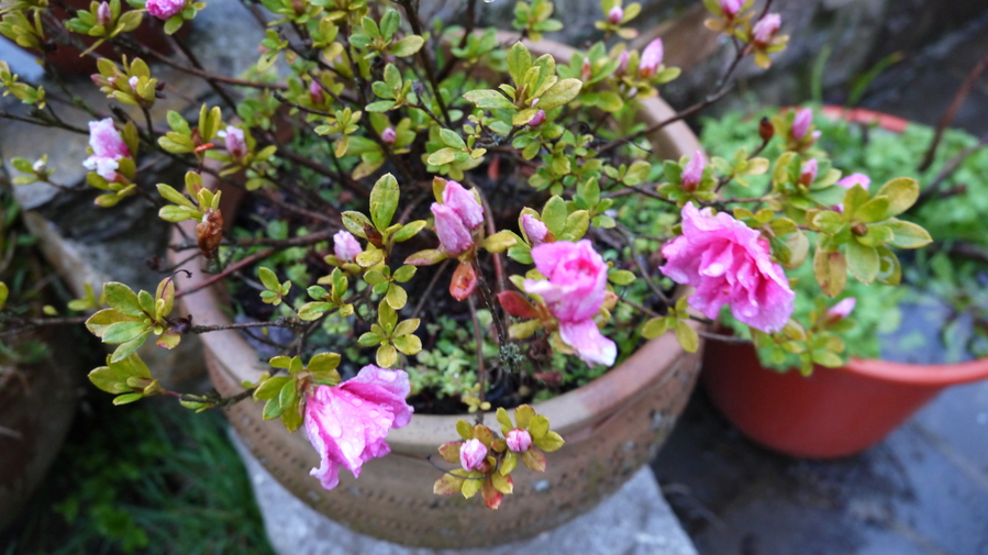Detalle del jardín, con flores y colores fuertes por todos lados