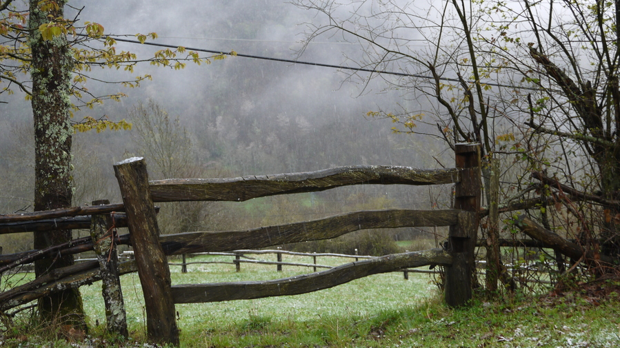 Un tronco húmedo, parte de un cercado