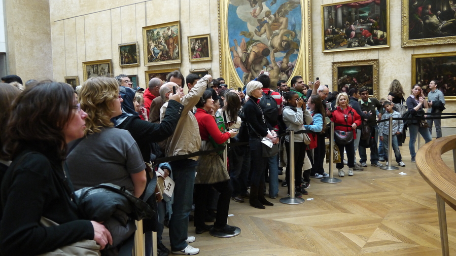 Gente fotografiando a la Gioconda en el Louvre