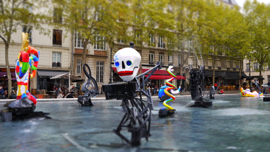 Fantástico el estanque con esculturas de la plaza Igor Stravinsky, frente al Pompidou