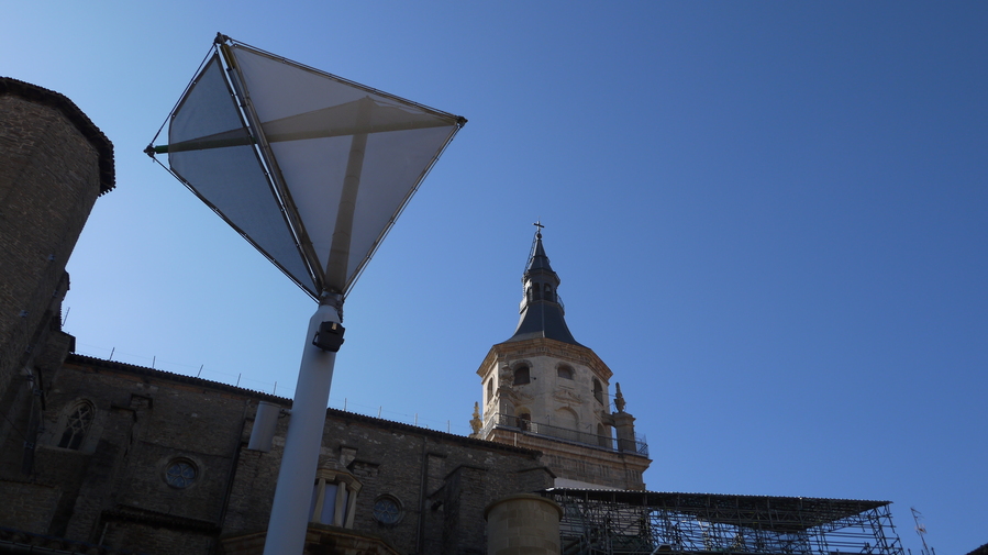 La catedral al fondo y una sombrilla delante