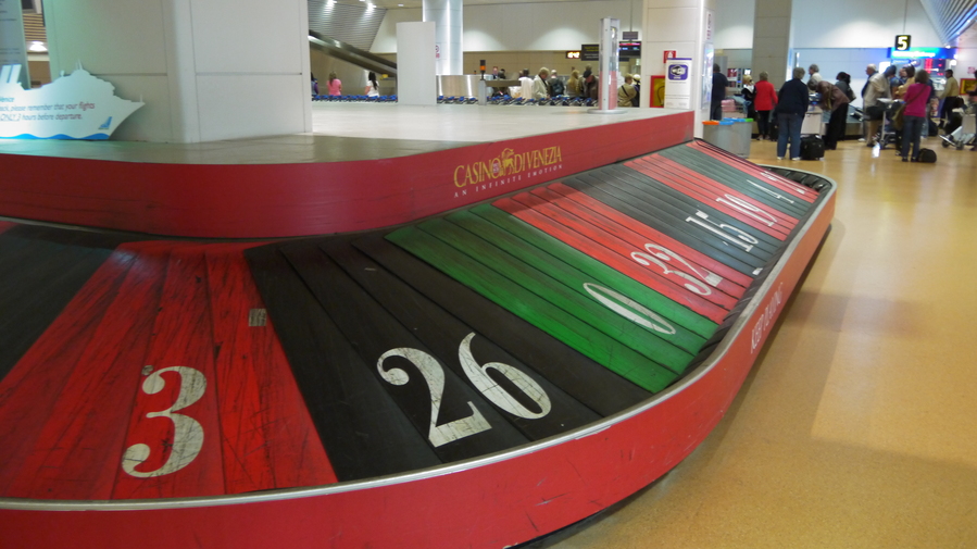 Muy curiosa la publicidad del Casino de Venecia en el aeropuerto de Venecia, que te recibe al ir a recoger las maletas en la terminal. Sutil pero que se te queda en la cabeza. Y eso que yo no soy de jugar en absoluto.