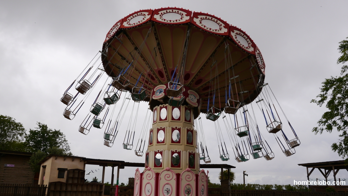 Es una atracción de unos 6 metros de alto. Las sillas están vacías porque estaban haciendo pruebas antes de comenzar el día.