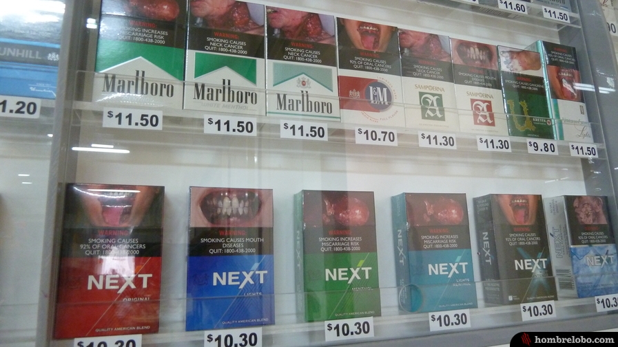 Cajetillas de tabaco con fotos de gente con cancer y tumores