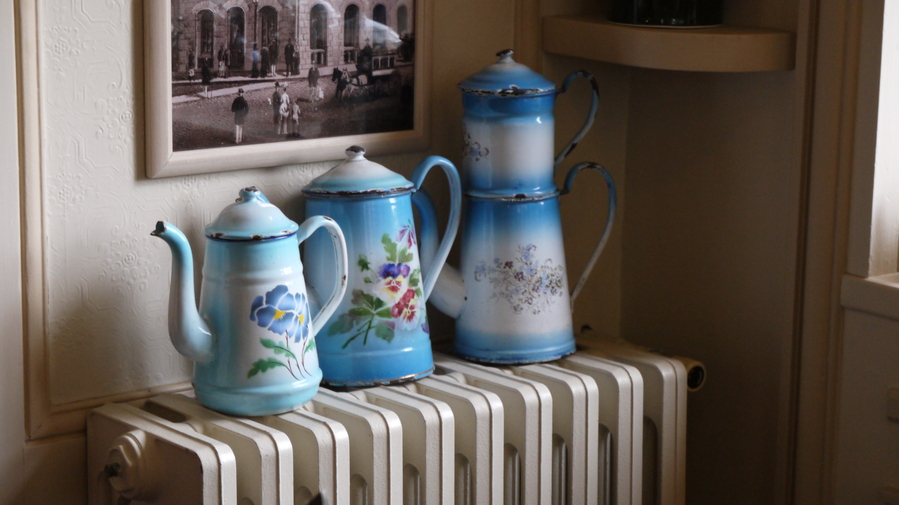 Y en uno de los momentos de reposo y solaz que tuvimos, nos acercamos a una cafetería enfrente de la Catedral de Chartres y nos encontramos con que estaba llena de teteras. Muy Francesa la idea, desde luego, y que además daba un ambiente muy especial al lugar.