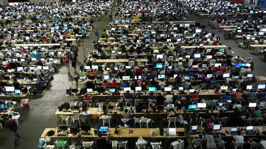 Estas son escenas de la Euskal Encounter, la LAN party más grande de España y una de las más grandes de Europa. Alucinante ….