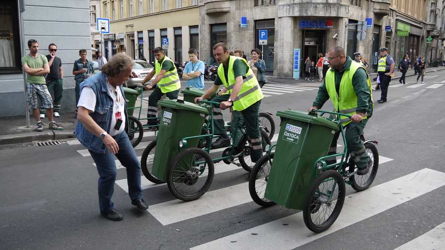 Muy divertida la loca carrera de carros de basura que pudimos ver en Zagreb. Con motivo de las fiestas de la ciudad organizaban todo tipo de eventos locos como este. Genial. Y lo realmente bonito era ver cómo los encargados de llevar los carritos eran los propios encargados de la limpieza de la ciudad, y ver el orgullo con el que lo hacían, cómo paseaban delante de la gente con satisfacción y presumiendo de su pedaleo.