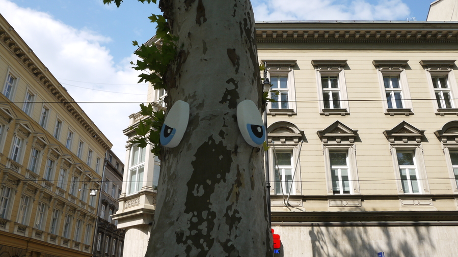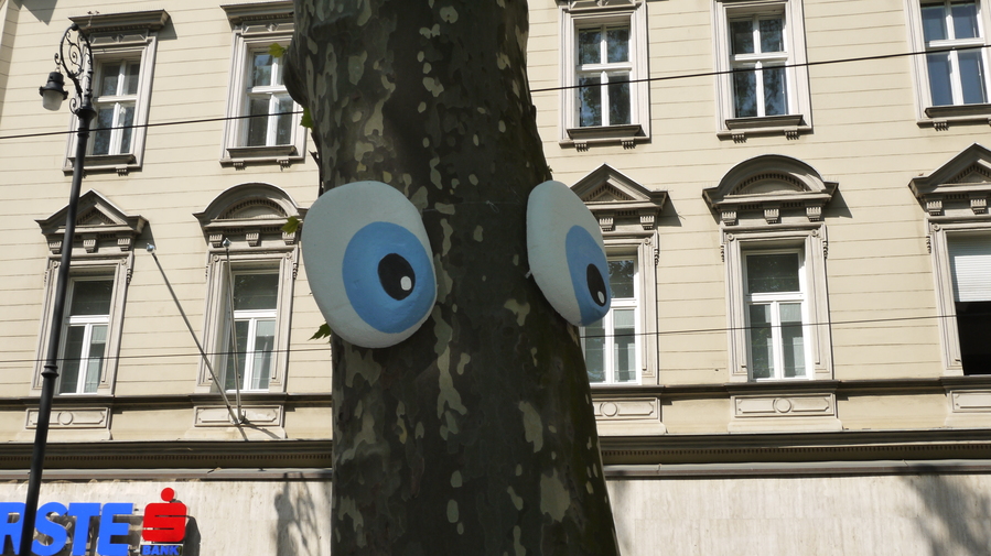 Un parque en Zagreb, el parque Zrinjevac, en el que ponen ojos a los árboles y plantan muñecos. Con una pérgola con actuaciones, un lugar delicioso. Que forma más simple y agradable de alegrar el lugar y hacerlo atractivo para los niños y mayores.